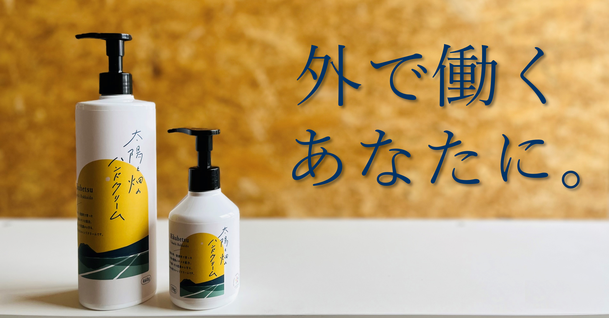 【太陽と畑のハンドクリーム】 460g入りです。 地元建設会社と共同開発した 外で働く人のためのハンドクリームです。 一次産業や土木建築業に従事する人の多い陸別町。 過酷な環境にさらされるその手を 陸別町生まれの植物エキスで守りたい。 そんな思いで作った商品です。 保湿成分としてムラサキ根エキス、トウキ根エキス、トウキンセンカエキスを使用。 これらの植物は全て北海道陸別町で栽培しています。 べたつかず、手によく馴染む使用感でお仕事の邪魔をしません。 レモングラス精油のほのかでさわやかな香りで、 手軽に使いやすいポンプタイプのハンドクリームです。 また、エゾシカ脂を配合することで、 保湿作用がアップするだけでなく、 廃棄されがちなシカ脂の有効活用にも繋がります。 エゾシカと人が今後もよい関係でともに生きていくため 売上の一部は(一社)エゾシカ協会に寄付いたします。 もっともっと知って欲しい! 詳しい商品開発ストーリーはこちらから! https://tanelab.theshop.jp/p/00030