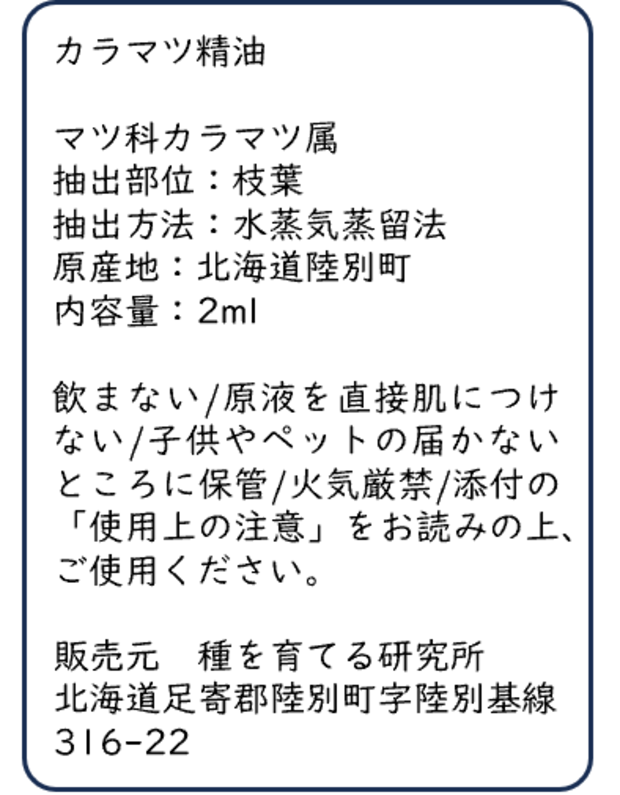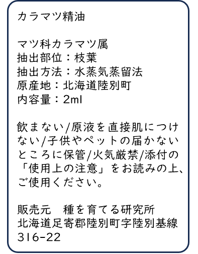 【数量限定】カラマツ精油(2 ml)「りくべつのかおり」